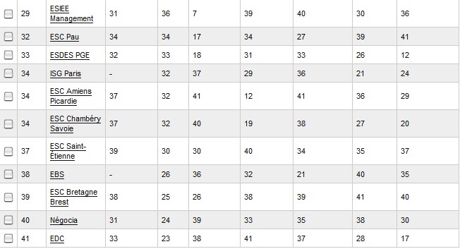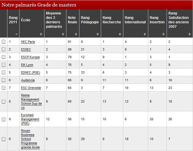 《焦点》杂志:2011年法国高等商学院排名法国《焦点杂志》每年对法国41所属于高等精英学院范畴(Grande Ecole)的高等商学院进行排名,本文给出2011年的排名情况,给有志于申请法国最优秀商科教育资源的学生作为参考。 ![]() ![]() ![]() (责任编辑:马老师) |
