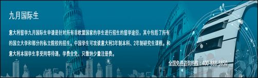 随着2012-2013年度意大利马可波罗计划和图兰朵计划的预注册圆满落幕,关爱留学意大利部正式启动了2012年9月常规国际生的招生报名计划,通过九月国际生途径,中国高中毕业生同样可攻读意大利大学3年制本科课程,大学毕业生可攻读意大利大学2年制硕士课程,学费全免。