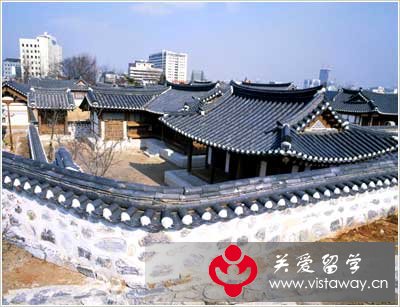 传统韩式住宅从三国时期(公元前57年~668年)到朝鲜王朝(1392~1910年)后期一直没有大的变化。只是在某些方面略加改进,以适应北部寒冷和南部温暖的不同气候。建造传统风格住宅的主要材料是泥土和木头。泥土将室内同室外的热气隔开。房顶所用黑色瓦片是用泥土做的。 通常是红色。而且,韩式住宅的框架不用钉子而只靠木桩支撑而成。简单的传统住宅里有一块长方形地板,一间厨房,有一边是卧室从而形成一个 'L'形,后来又形成了‘U'形或中间有一个院子的方形。上层社会的住宅由几个独立建筑物构成,一处供妇女和孩子住,一处供家庭中的男子和他们的客人使用,称作“厢房”,还有一处是给佣人们的。所有这些都在一座围墙内。